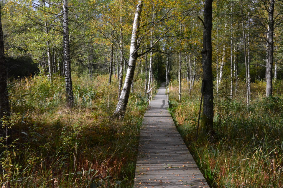 Along the trail on the way to Bodajsön there are wetlands on both sides. The trail ends in the mill community of Boda. Here you can visit the glassworks, which has several noteworthy buildings along the mill street.