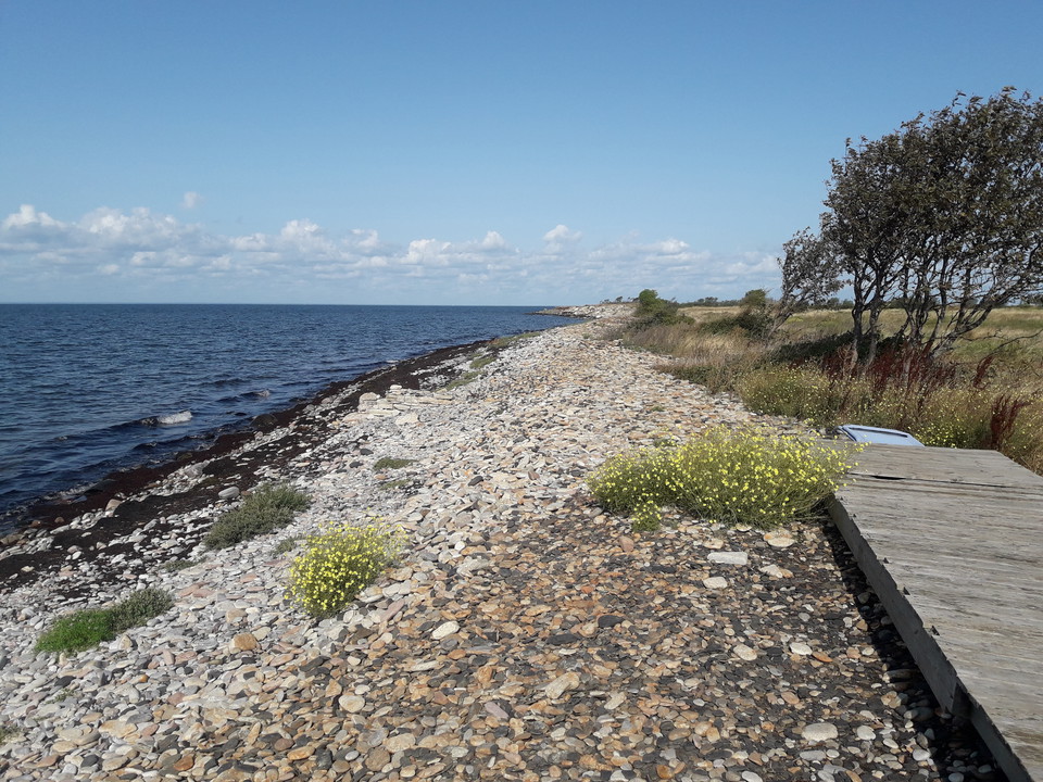 Municipal bathing area north of the idyllic Grönhögens harbor. Stone beach. Jetty, coffee table and barbecue area.
