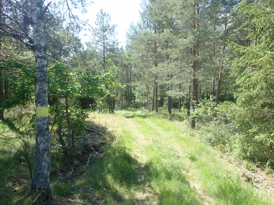 It passes through varied landscapes in partly hilly terrain with mountain slopes through a living agricultural and forestry landscape. The trail starts at Lofta Church, which dates from 1837 and is one of Sweden's largest rural churches. The trail then continues past one of the many rock carvings that you will pass along the trail. One of these rock carvings is Utrikesstenen which has a unique carving with a man plowing with a horse, sun symbols ships and bowl pits. Several sights passed along the trail include a large Bronze Age cairn and a stone square and shingle field from the Ancylus period (700 BC). In the Bronze Age 2500-4000 years ago, the Baltic Sea stood about 10 meters above today's level.