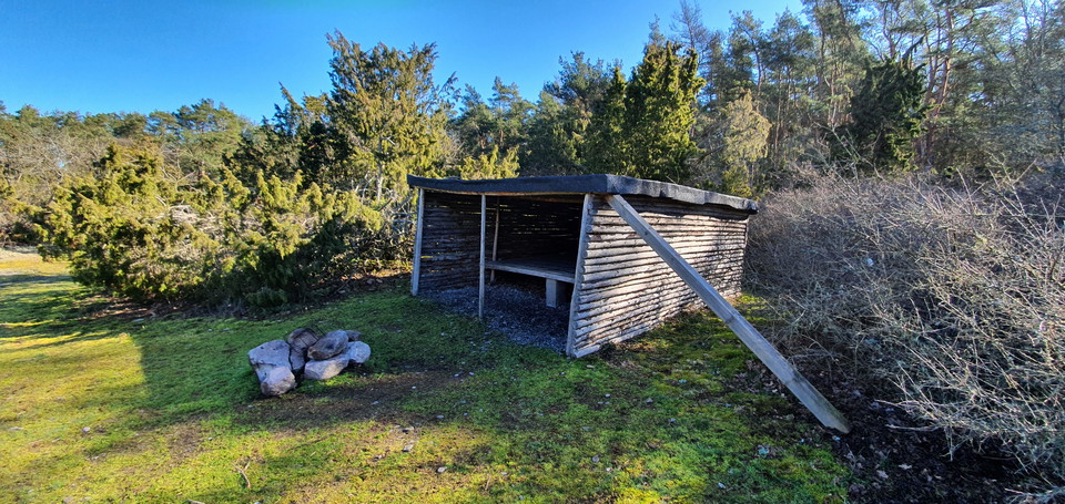 Rest area along Mörbylångaleden with toilet, barbecue area with firewood, seating and shelter
