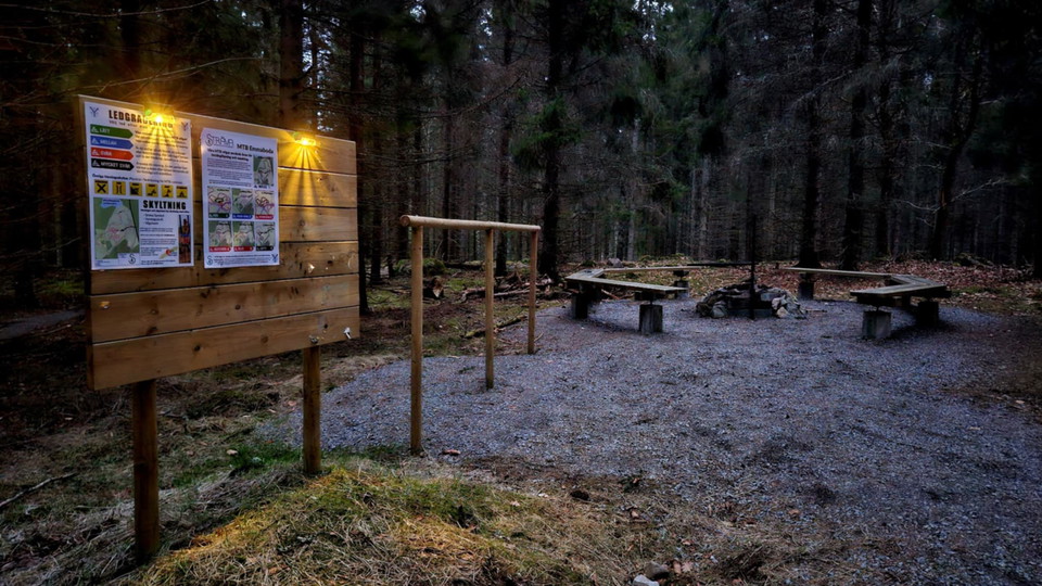 EmmabodaSträva Activity Area has several trails for MTB. The trails are circular loops with start and finish at the area's meeting point. The meeting point has an information board about the various trails, bike racks and a barbecue area with barbecue grills, as well as benches for 10-15 people, maybe even more if you want.