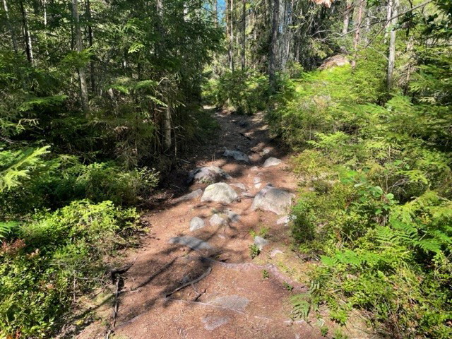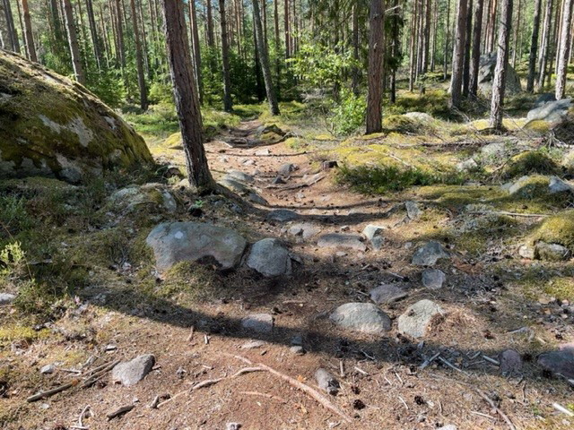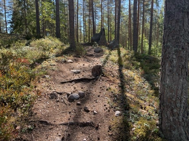 Utmaningen, Blue 6 km Utmaningen is a trail that offers both parts with really nice flow where the speed can be kept through curve combinations and over crests, while gradually becoming a little tighter and more technical. But it is always very entertaining. At several points along the trail, you can choose between easier and more difficult passages that then meet a bit later, perfect if you are a group with different levels of experience in trail biking. The challenge is a trail to develop and grow with.