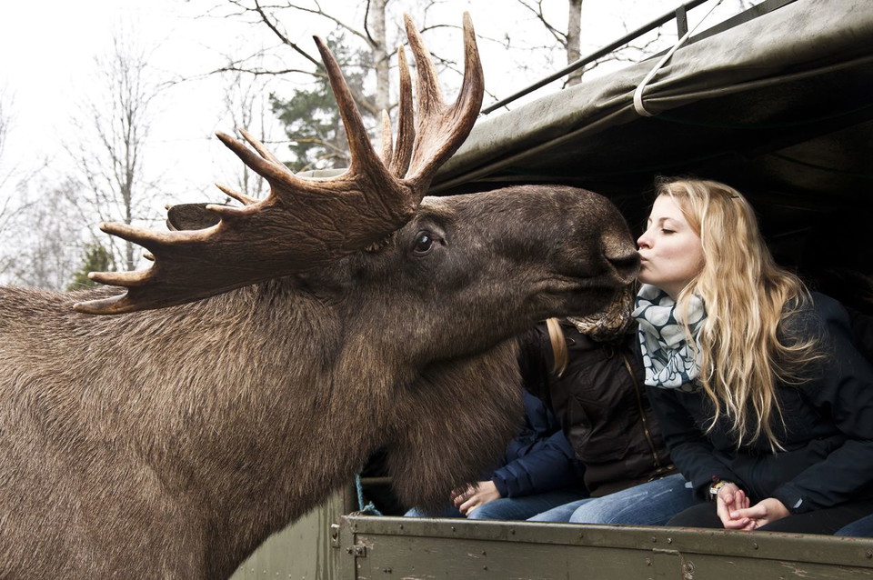 During our Safari tours you can get really close to the moose.The wagons you travel in have partially open sides, giving you the opportunity to pet and feed the moose, while sitting well protected. Bad weather is no problem.