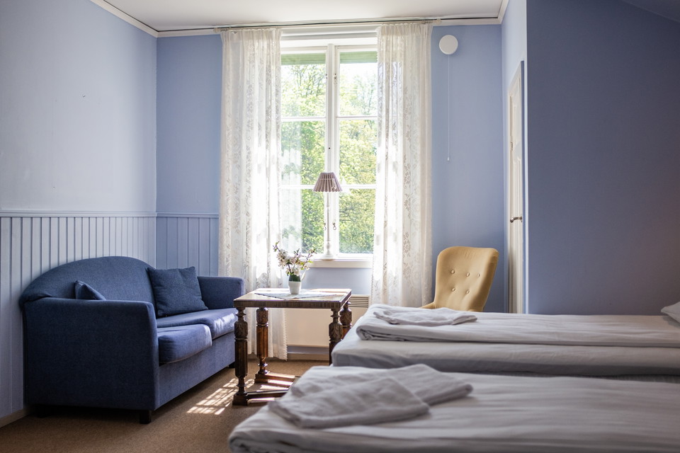 Stay in our cozy, old-fashioned Swedish rooms, hike along quiet forest trails, or dip your feet in the nearby lake. Whether you're traveling alone or with loved ones, Grimsnäs offers a calm and down-to-earth atmosphere – perfect for rest and reflection.