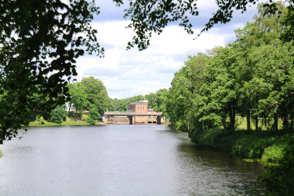 With glistening water, the river Lagan makes its way through Ljungby.