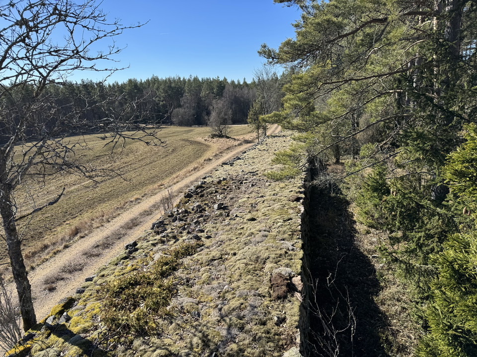 Between Målerås and Sävsjöström, you'll find one of the widest stone walls in the Kingdom of Crystal. Once upon a time, horse and carriage traveled along the top of this wall, and if you walk a short distance along the nearby gravel road, you'll come across a lookout tower. From there, you can view this massive stone wall from above.