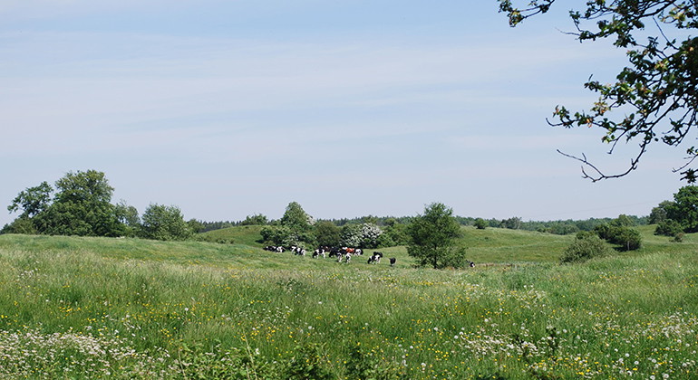 Det här är Österlens svar på Skottland – med kalkrika gräsmarker, ljunghed, kullar och havskant. Här kan du vandra över öppna marker, plocka backtimjan, se glador sväva och bada i havet. Rastplatser finns vid strandbaden och stigar sträcker sig längs hela åsryggen.