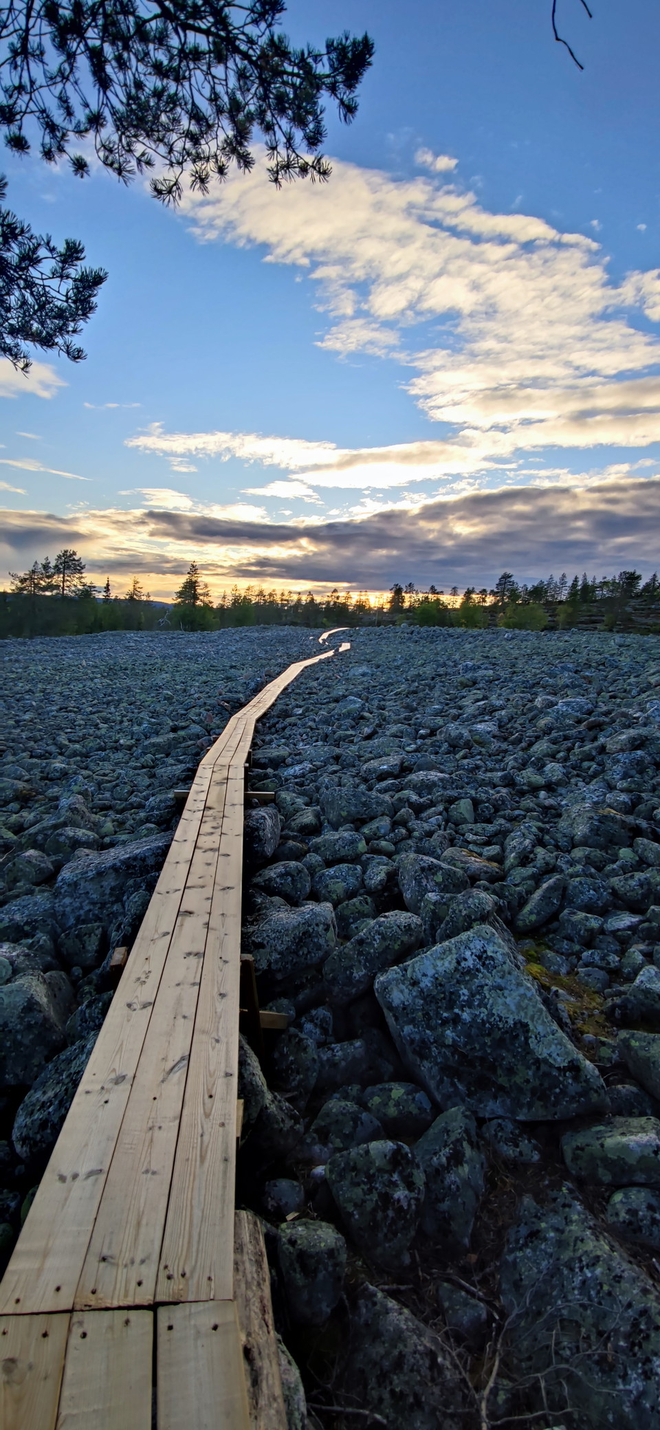 The trails go up the Nuuivaara and Iso Paljukka mountains, two mountain peaks next to each other that are separated by a large shingle field called Pirunpelto (the devil's field). From Armasjärvi you can park your car at the Armasjärvi village cottage by bike it is best to go out on the village road then north and turn right through the farmhouse and follow the path up to the pebble mountains. hikers can start directly from the village cottage following the path that leads up to Pikku Paljukka and there is the pebble field that you travel on. The trail continues up to Iso Paljukka where you can see the Torne River, Mount Luppio and Lake Armasjärvi. There is a barbecue area called the cave which is a natural shelter. The trail follows the smooth stone slope and rocks next to it, and then you come to the rattling stone field which is tracked for walking and cycling. At Nuuivara barbecue area there are benches and hammock where you can rest after a tough workout. The trail then descends 3km until you reach Armasjärvi and the village road through a farm.