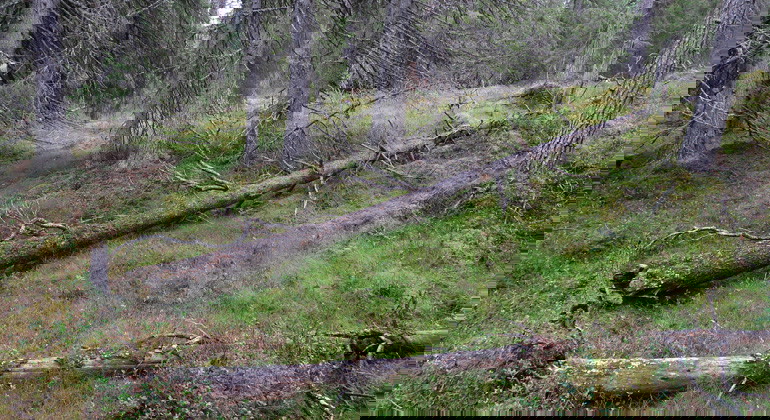 Since the area was burned over 200 years ago, the forest has grown back naturally, remaining largely untouched. The reserve is predominantly composed of spruce, with some birch and a few old willows and pines, interspersed with small open mires and wet spruce swamp in the northern lowland area.
