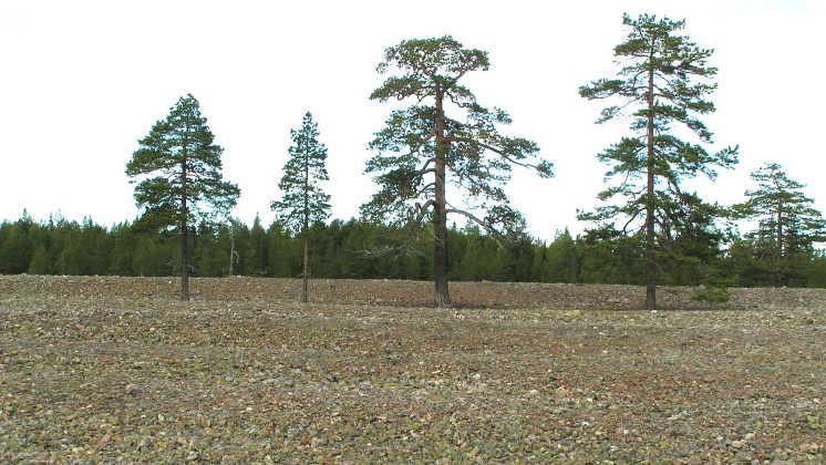 Stenåkern lies on Sandön island in Luleå archipelago. The area begins in the north at Lappmyrberget mountain. The central parts comprise a vast shingle field which is surrounded by sparse pine forest. The area is 0.4 square kilometres and there is a ban on snowmobiling on the whole of Sandskär, including Stenåkern.