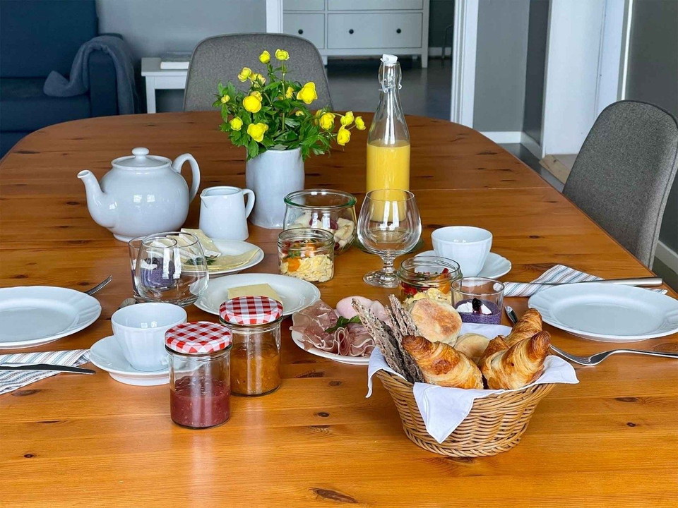 The guesthouse has four carefully furnished rooms – two singles and two doubles – with shared bathroom, kitchen and dining area. For those seeking more privacy, there’s a separate apartment with two double rooms, its own kitchen, bathroom and dining space. Simple, functional and designed in a Nordic style.