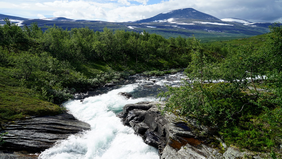kilometres downward hiking, you arrive at the forking Smuolejåhkå rapids and