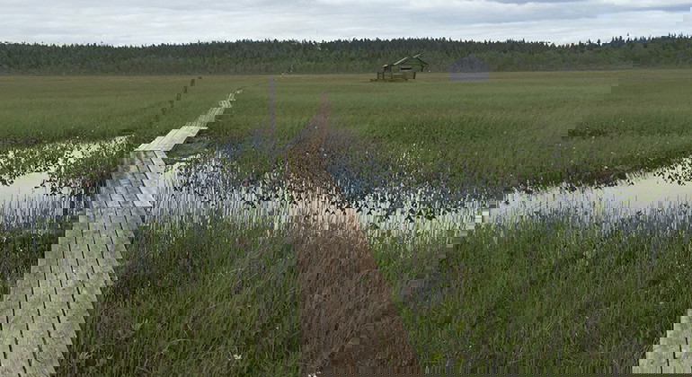 A 1,9 kilometres long trail over the Vasikkavuoma mire, from the parking lot south of the reserve, to the village of Erkheikki on the north side. The start of the trail from the south is wheelchair accessible along 250 metres, to a barn with a plankway around it. North of that, the trail consists of more narrow plankway and a smaller path.
