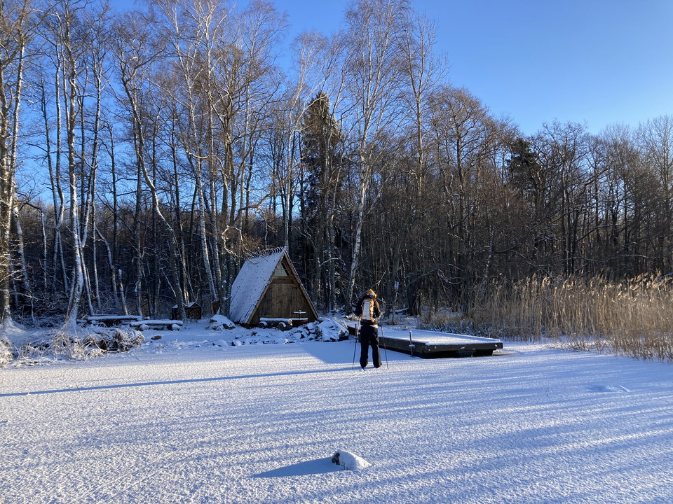 A rest area with both shelters and barbecue areas. Perfect destination for an excursion by kayak or long-distance skis.