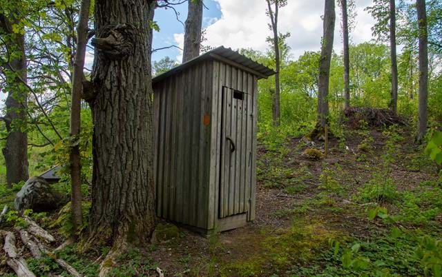 Vindskyddet är försett med golv. Här finns även grillplats och torrdass.