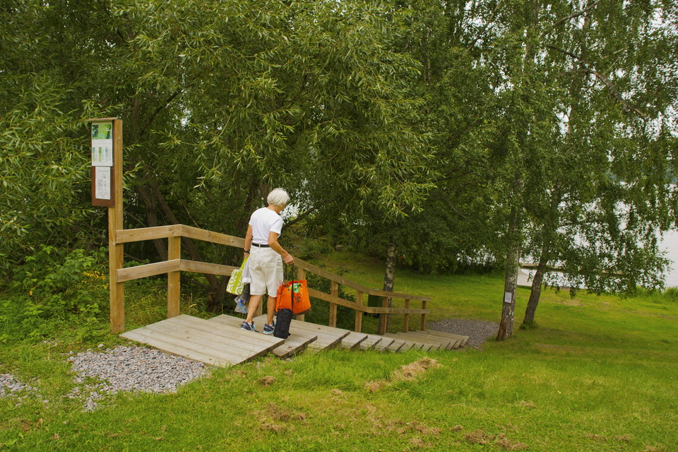 A bath with a sloping grassy area facing east for those who do not want the strongest summer sun. The bath is located on the western shore of Lake Svinstadjön south of Bankekind.