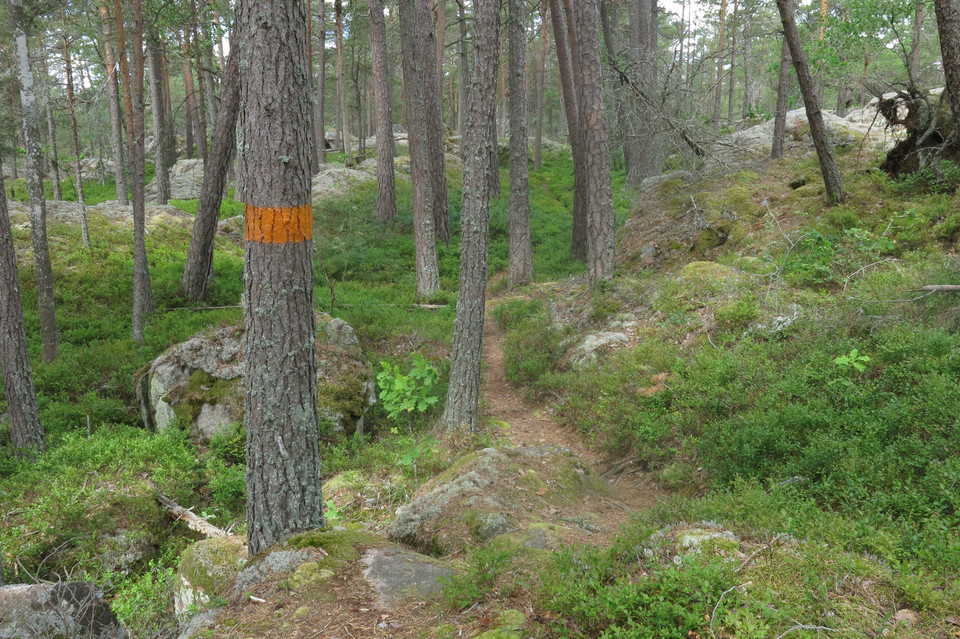 Borgbergsleden you go by following orange markings and signs. The trail runs in hilly terrain with steep climbs and descents. At Petersburg's exercise center there are WC and changing rooms to use. There are several barbecue areas and rest areas along the trail.