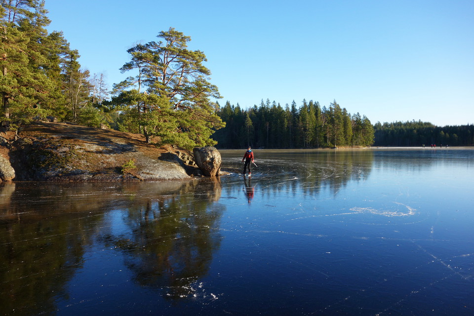 The seven lakes tour is 29 km long. You pass the lakes Näknen, Nedre Vekmangen, Svängbågen, Haggöl, Övre Glottern, Såggöl and Nedre Glottern. Between Vekmangen and Svängbågen it will be a slightly longer walk, as well as between Haggöl and Övre Glottern. Watch out for traffic on Katrineholmsvägen! And watch out for weak ice! Have a nice trip!