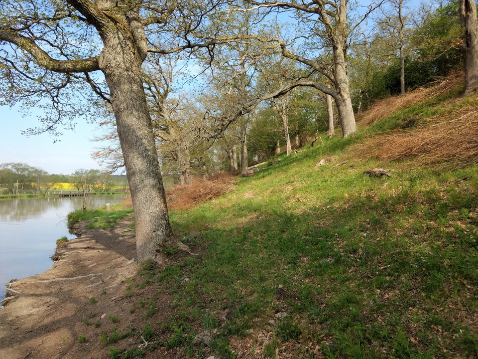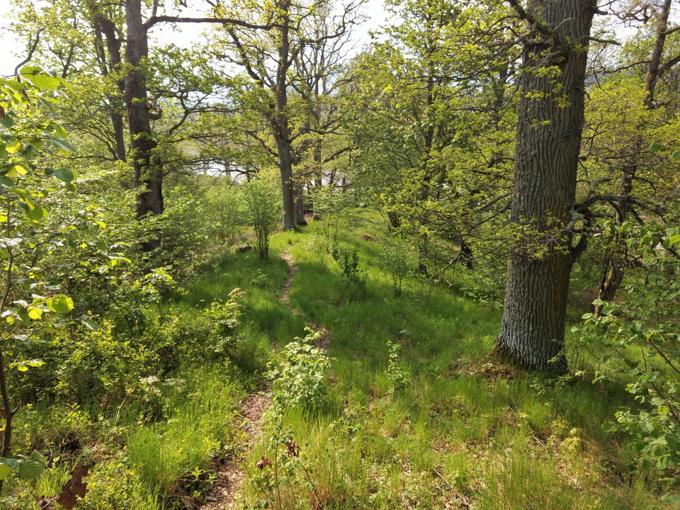 Along the northern side of the Göta Canal, by the Duvkullen locks, there are two hills with valuable oak environments and two burial grounds from the Late Iron Age. Most of the graves are round stone circles and a small number are mounds. Great natural values are linked to the old and large trees. In addition to oak, there are also ash, elm, hazel and birdberry trees. From Göta Kanal, paths lead up the hills and burial grounds. A path also runs below along the canal and the south-facing slope. Here the oaks have recently been cleared to create light and space for the trees.