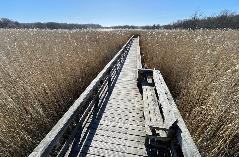 The bird platform at Vistkärret is a small visitor gem a short walk south of Sturefors. You will find the platform if you follow the Rördromsstigen path from the sports ground's parking lot and then take the wide footbridge out into the reeds. From the platform you have a nice view of Stångån where the watercourse bends east towards Ärlången.