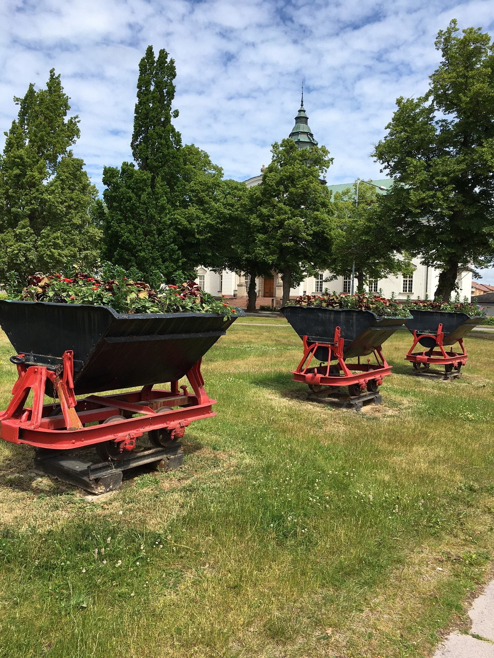 The park also has three old railway wagons filled with flowers. The wagons come from Lemunda sandstone quarry.