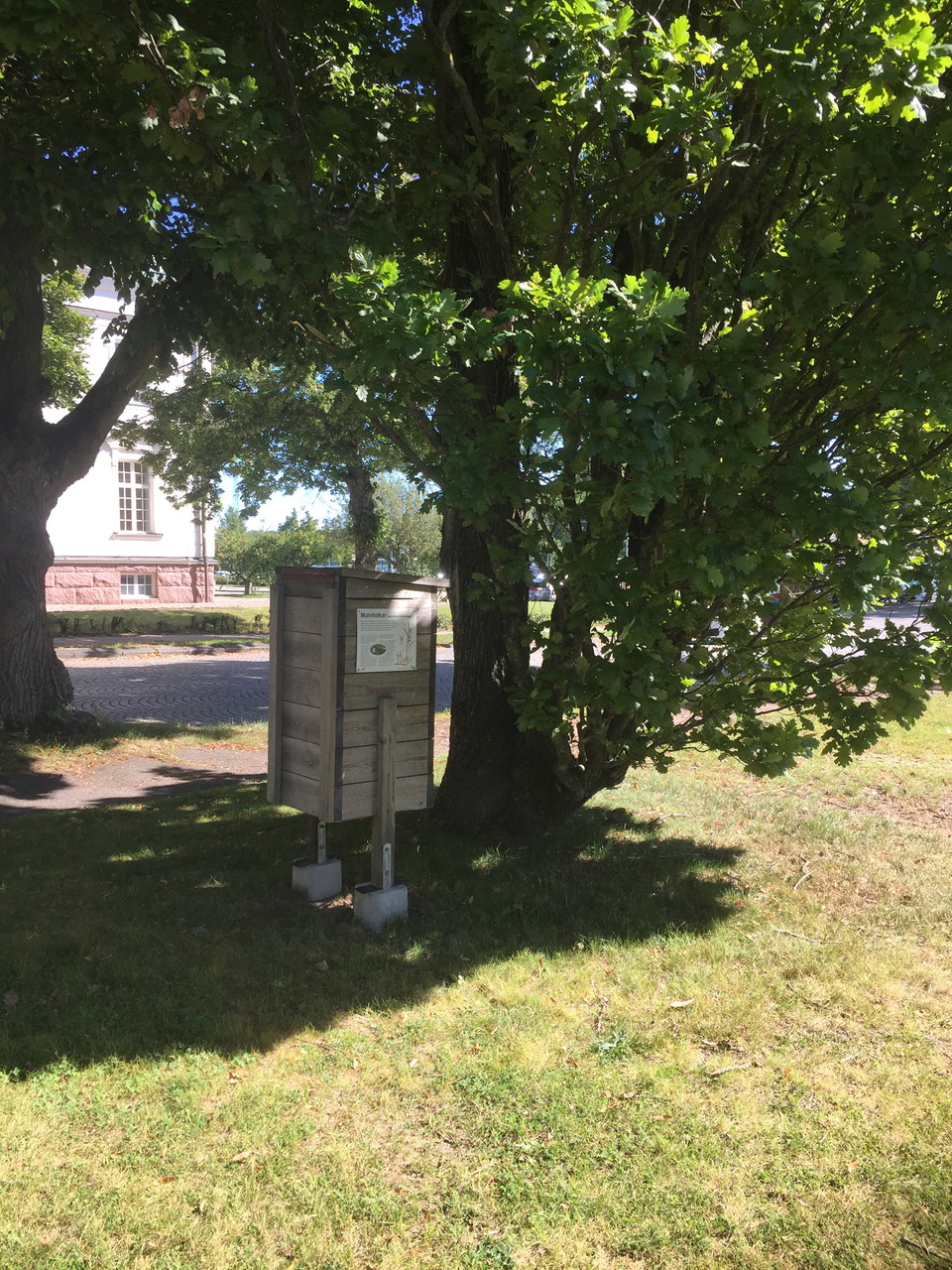 In the Railway Park in front of Motala Central, you can sit down by the beautiful fountain and admire the summer flower beds. A blood beech can be found in the northern part of the park and pyramidal oaks around the fountain. One of the oak trees is home to a burrow for insects. The hollow is meant to mimic an old hollow tree, of which there is a great shortage. The hollow contains a sawdust-like mixture, mulch that many beetles live in, for example.