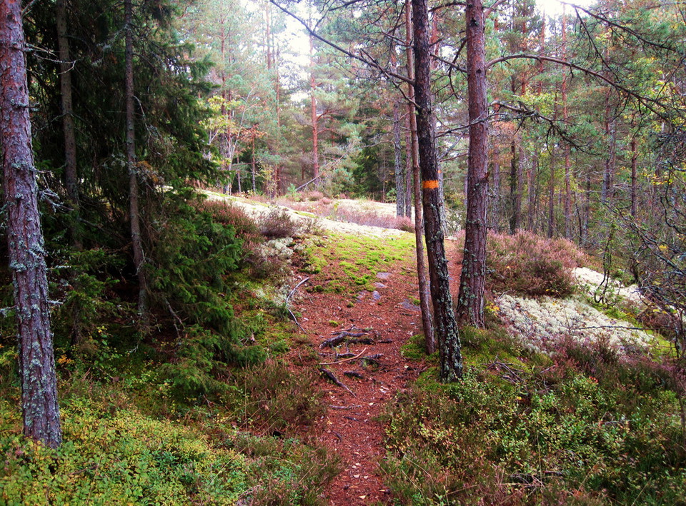 The hiking trail along the dramatic fault line offers magnificent views of Bråviken and exciting nature experiences on the primeval forest-like slopes. The trail extends about 2 km down to the gravel road at Verdandigården.