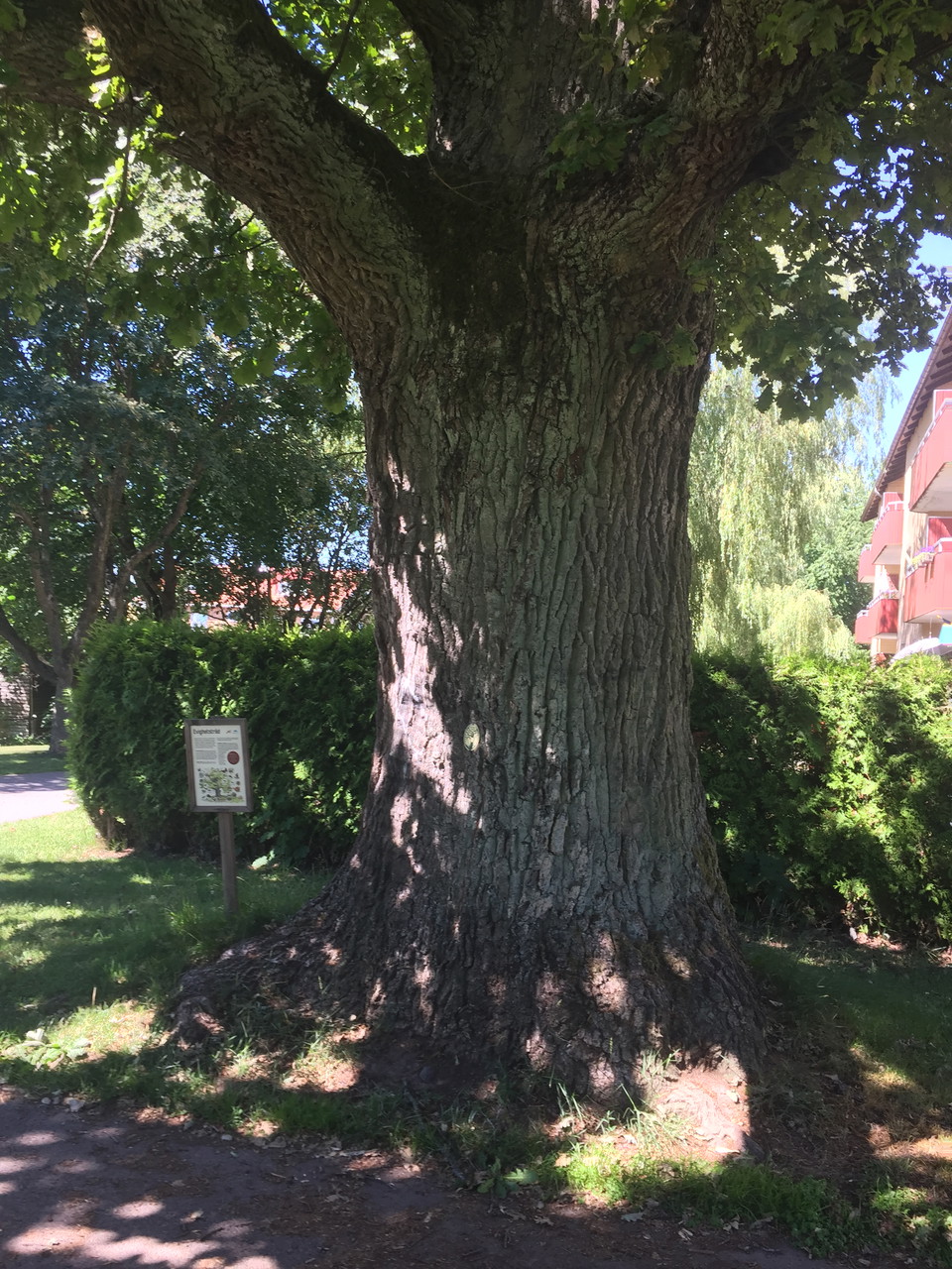 Ostdalsparken is a long green park that runs below Storgatan. You can cycle here if you want to avoid the traffic there. There is a playground in the park, Storgatan playground. The park is dominated by grassy areas and many old trees such as lime, aspen, bird berry, willow, oxel, maple, chestnut and oak. A large old hollow oak can be found near the playground. Several of the large old trees are classified as perpetual trees.
