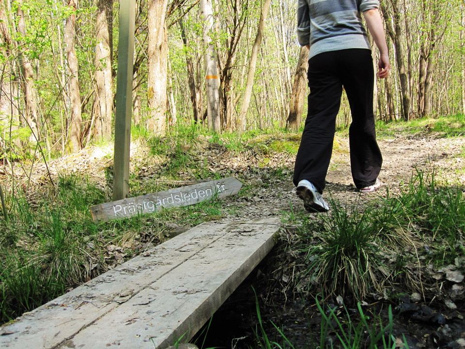 Här kan du ansluta till Prästgårdsleden, en vandringsled som tar dig runt i den vackra naturen söder om Skärblacka.