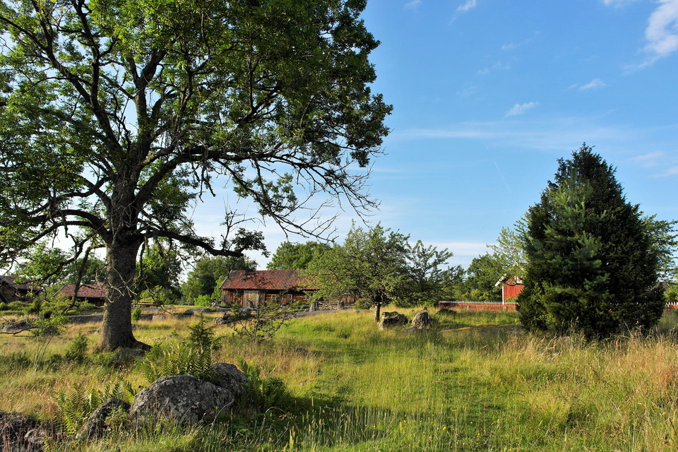 mkt vacker natur. Fina gamla hus och en välordnad grillplats precis vid sjön.