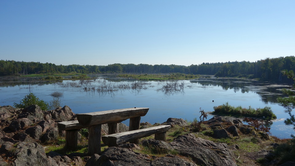 Turn off Haningeleden at the height of Korpvallen's soccer fields and drive towards Rosenkällasjön and Kolbyttemon. After 1.9 kilometers, turn right towards Rosenkällasjön. Continue for 1.7 kilometers and then turn right again. You will see the entrance with parking space and information sign after 500 meters. To get to Rödberget's view and rest area, follow the path up the mountain north of the entrance.
