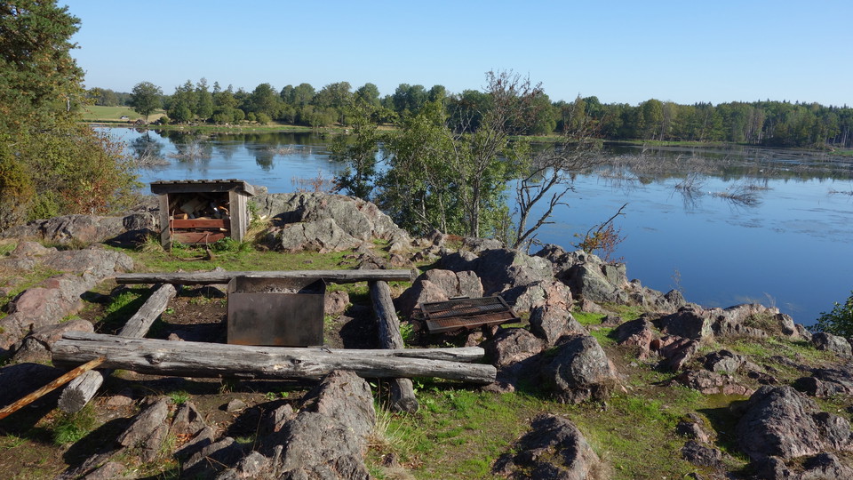 Vid rastplatsen finns en eldstad, så här kan du elda och grilla din mat. Ved finns vanligtvis på plats, men vill du vara helt säker på att kunna elda rekommenderas att du tar med dig egen ved eller grillkol.