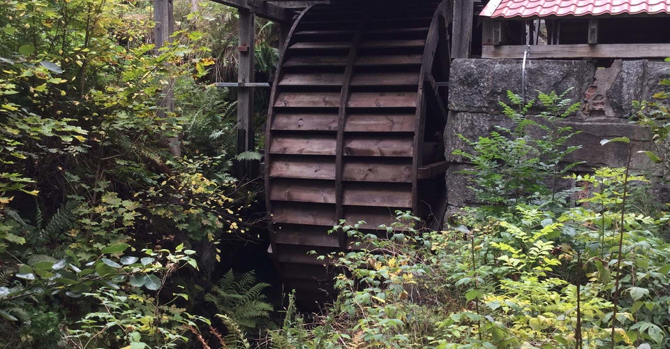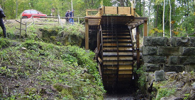 By the mill ruin you can admire the massive waterwheel put in place in 2002. The trail will then take you through diverse forests of different ages and structures.
