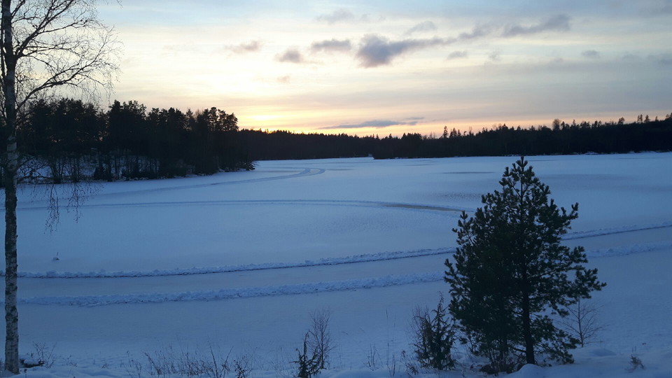 At present, an approximately 24 km long loop is plowed, from Riksväg 55 to Sjökullen, towards Vik and Tjalvestugan. The ice is good with shorter stretches of frozen ice.