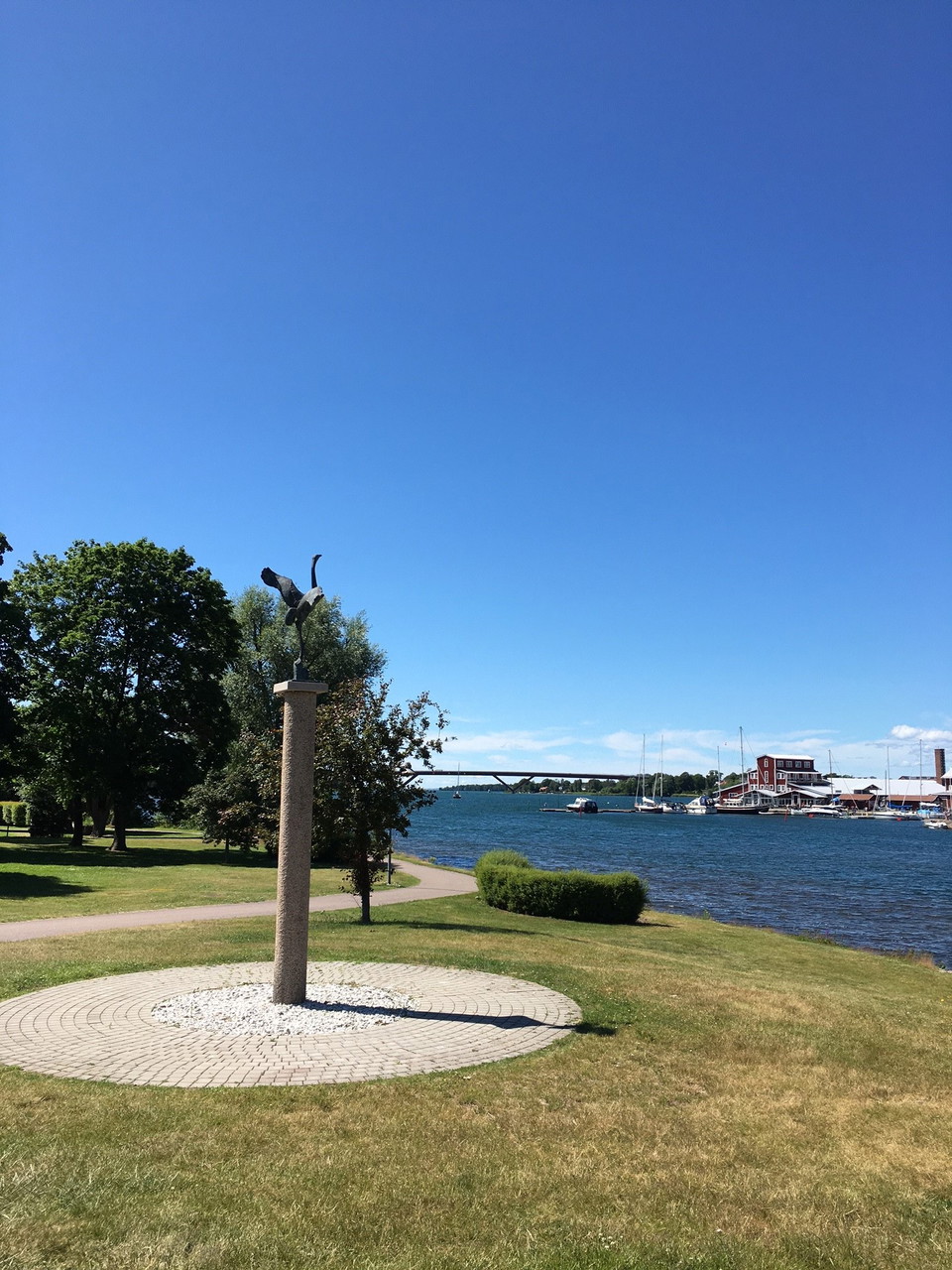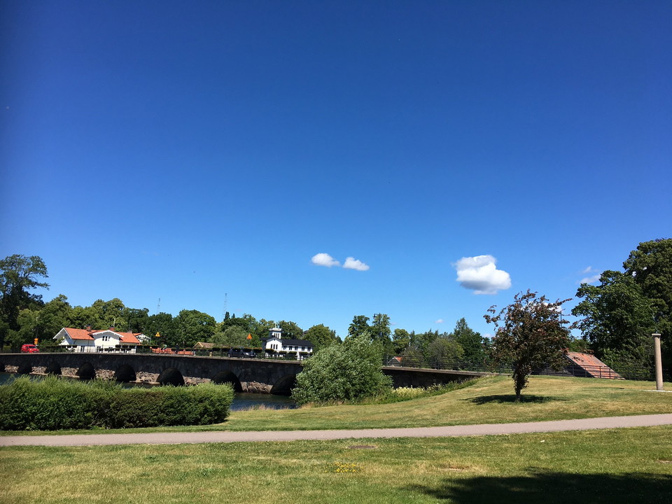 Strömparken and Gästisparken are scenically located on the southern shore of Motala Ström and on both sides of the Old Strömbron bridge. Strömparken is on the west side of the bridge. Here stands artist Jussi Mäntinen's beautiful sculpture Tranan. It is depicted at the moment of flight, with wings and neck stretched. In 1950, the Crane was purchased.