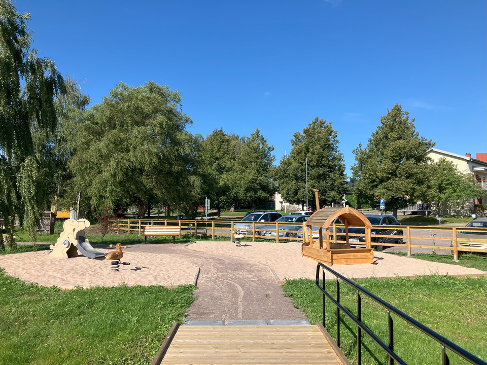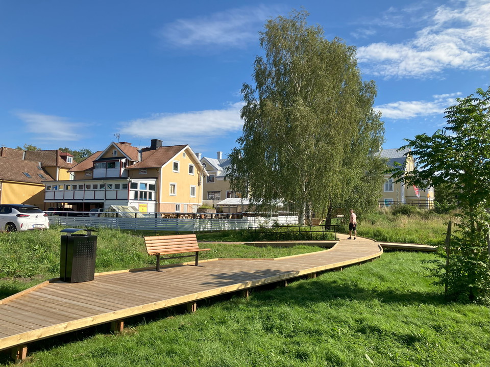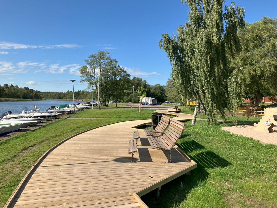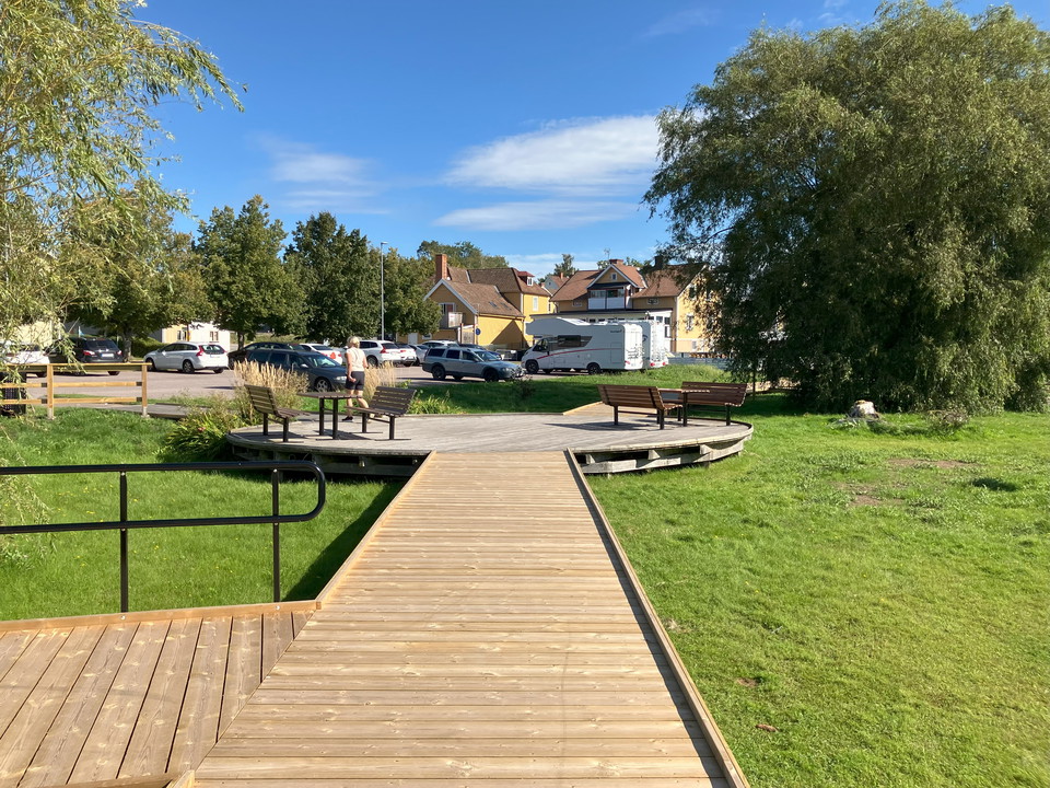 The park is beautifully situated by Motala ström. There are nice wooden walkways with benches, tables and barbecue. For the younger children there is a small playground.