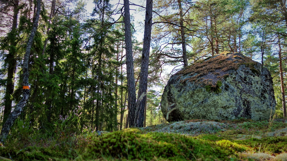 The hiking trail, which is steep in places, takes you around the nature reserve and is 4 km long. The trail passes over rocky areas with old pines but also through dark spruce forests. The view from the ancient castle Torsborgen is beautiful. This is where people took refuge during the unrest of the Migration Period. You can make a small detour up to the rocky beaches of Herrsjön if you want to take a dip, otherwise it is convenient to use the bathing area's jetties in Lillsjön.