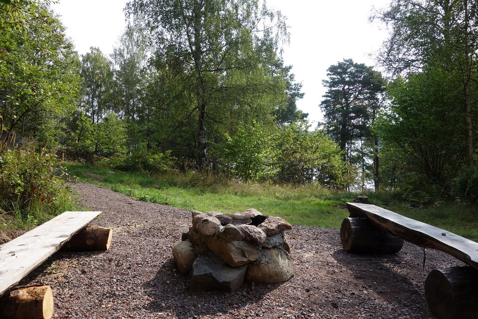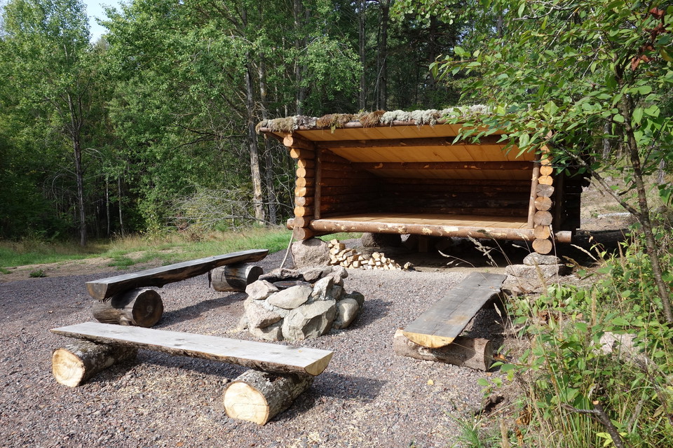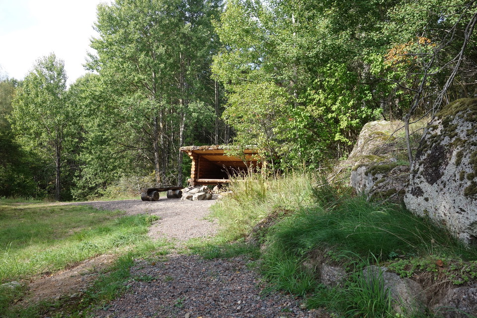 Just a stone's throw from the shore of Nedre Glottern is a small, timbered shelter. There was a croft here called Karlsdal where a forest ranger lived. Down by the beach was a small shipping port for peat and charcoal. The croft is gone but now here is the windbreak!