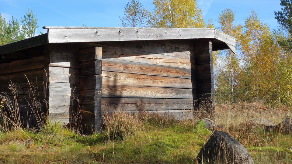 On a hill west of Axsjön is a shelter with a barbecue area. You can find it if you follow the marked path from Östgötaleden just south of Lilla Farsbo. The shelter is just over 100 meters from Östgötaleden and 150 meters from Axsjön.