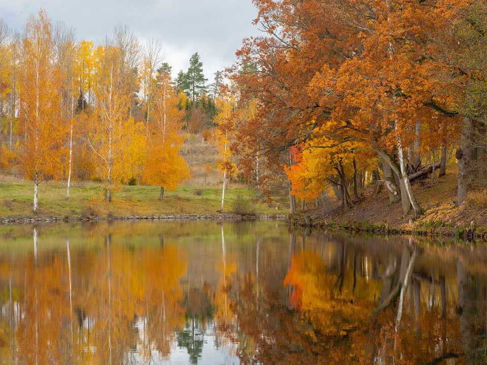 gå igenom flera naturreservat med lummiga lövskogar och eklandskap samt