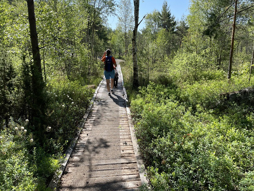 Slingan lämpar sig mycket bra till att vandra med hund. Vid sjön Skomakaren kan man göra en avstickare ner till vattnet för att låta hunden dricka och svalka sig. Leden går genom tall- och granskogar med inslag av hällmarker, kärr, mossar och mindre sjöar. Där leden korsar fuktiga områden har spänger anlagts. Markvegetationen består ofta av ljung, blåbär- och lingonris. I mossar och kärr växer tranbär och typiska kärrväxter som ängsull.