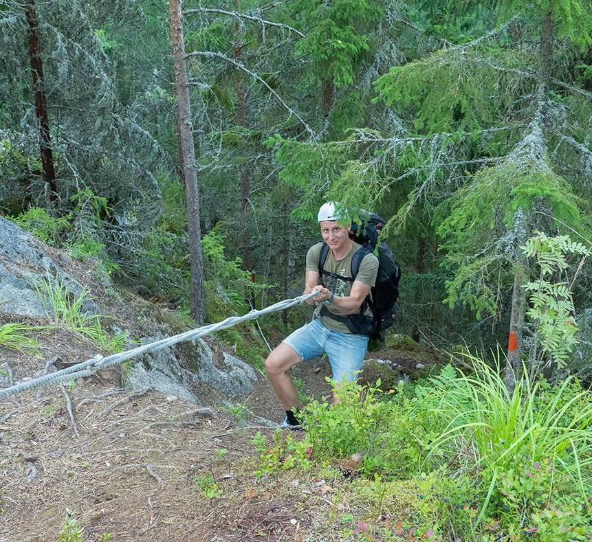 OBS! Det finns två branta passager med rep, dels mellan Börshults utsiktplats och vindskyddet vid Knuts Skeppstad och dels väster om vindskyddet vid Lomsviken