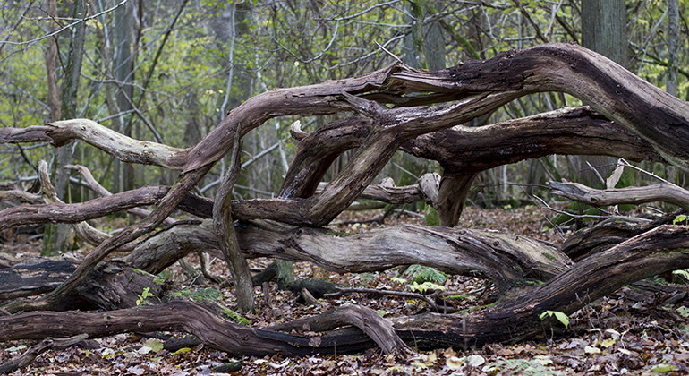 Linnebjer roughly means 'lime mountain'. There was probably a lot of lime growing here in the past - perhaps in the stubble meadows when the lime leaves provided good fodder. Today, the forest consists mainly of oak-hazel forest, but in places there is still a lot of lime and elm. In spring, the grove's plants bloom most abundantly, and species such as yellow dock and lungwort testify to the fertility of the soil.