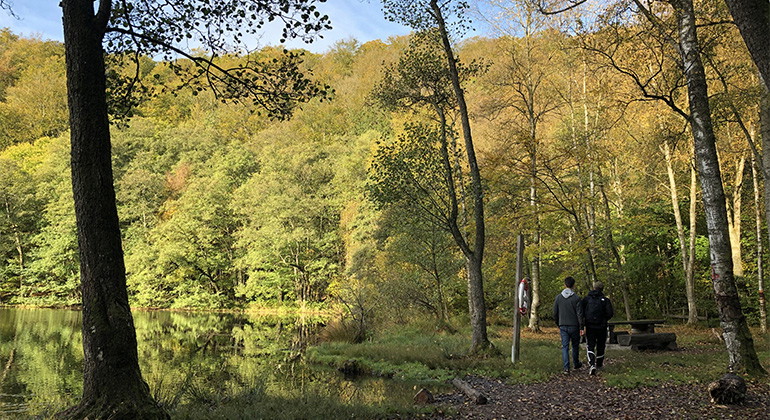 Relatively easy hiking trail that runs in beech forest and passes past pastures and meadows and includes a height difference of about 40 meters. Nice views of Lake Odensjön and you can, if you follow the white connecting trail, also get down to Lake Odensjön.