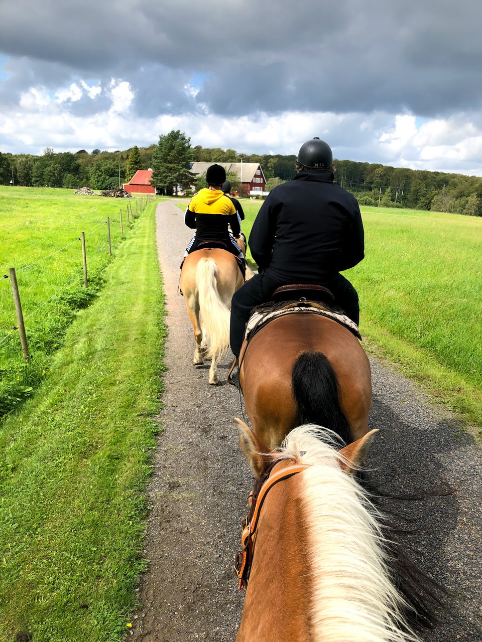 The horses are used to the surroundings, safe and secure on their feet.The riding is done in western saddles and old and young, even you who are not riding, can join us out in the woods.