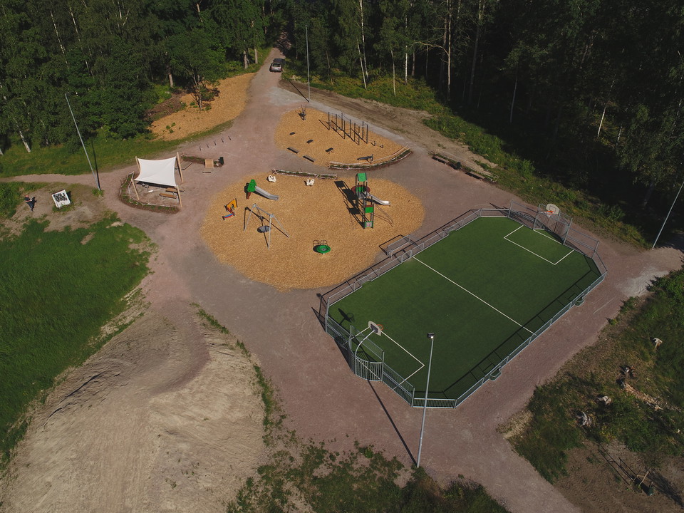 There is a multi-sports arena with artificial grass pitch, outdoor gym and playground