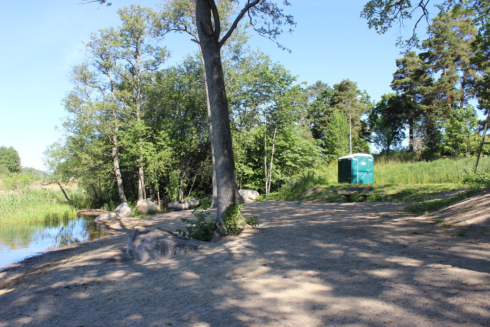 Vid badplatsen finns en brygga, en sittgrupp och en toalett.