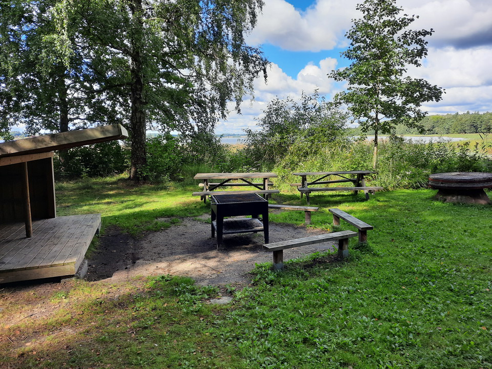 Yngarebadets fina grillplats. Finns både vindskydd och bänkbord i anslutning.