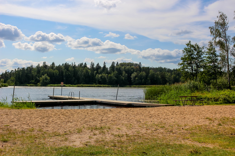 Nice, family-friendly beach with sandy beach and jetties. Dry toilets available.