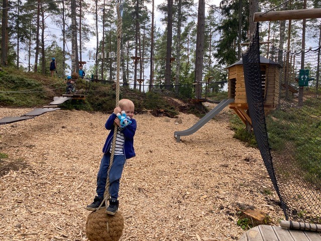 Low-height track for little adventurers. A fun playground with balance beams, climbing nets, slides, buddy swings, and more.